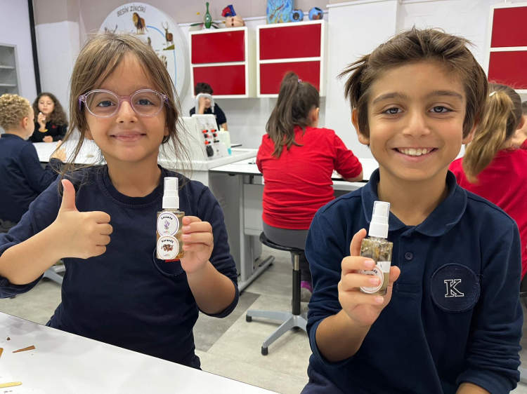 TED Yalova Koleji’nde Fen Bilimleri dersini uygulamalı öğrenme ile pekiştiren 3. sınıf öğrencileri, duyu organları konusuna yönelik olarak “Parfüm Yapımı” etkinliği gerçekleştirdi. Öğrenciler, kendi parfümlerini hazırlarken hem eğlenceli vakit geçirdi hem de bilimsel süreçleri deneyimleyerek kalıcı öğrenme sağladı.