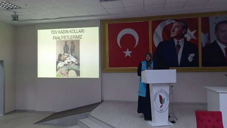 2022 yılında kurulan TDV Kadın Kolları, yurt dışında ve yurt içinde ihtiyaç sahiplerine yardım ve destek çalışmaları gerçekleştiriyor. Ramazan boyunca ihtiyaç sahiplerine; alışveriş kartı, gıda kolisi, bayramlık yardımı ve zekât dağıtımları yapan kadın kolları teşkilatının projeleri Yalova Üniversitesi öğrencilerine anlatıldı.