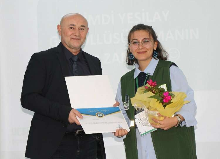 Öğrencilerden gelen soruları yanıtlayarak programını tamamlayan Uçarer’e çiçek ve teşekkür belgesi takdim edildi. Teşekkür belgesini takdim eden Okul Müdürü Ercan Gökkaya, Yeşilay Haftası vesilesiyle öğrencilerle bir araya gelen Uçarer’e teşekkürlerini iletti. Uçarer ise nazik davetleri ve misafirperverlikleri için Gökkaya’ya teşekkür etti.