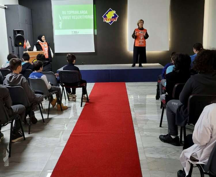 TEMA Vakfı Yalova İl Temsilciliği okullarda TEMA Vakfının çalışmaları ve amaçlarını tanıtıyor. Bu çerçevede Yalova Final Akademi Okullarında gerçekleştirilen etkinlik kapsamında, okul bahçesinde TEMA standı kurularak, öğrencilerle TEMA Vakfı faaliyetleri ve gönüllülük konularında bilgiler paylaşıldı. TEMA Vakfı Yalova İl Temsilcisi Arzu Demir, okul konferans salonunda vakfın tanıtım sunumunu yaparak öğrencileri bilgilendirdi. Sunumda, vakfın kuruluş amacı, faaliyetleri ve gönüllülük programları hakkında bilgiler verildi. Sunumun ardından öğrenciler ve öğretmenler, vakfa gönüllü olmak için başvuruda bulundular.