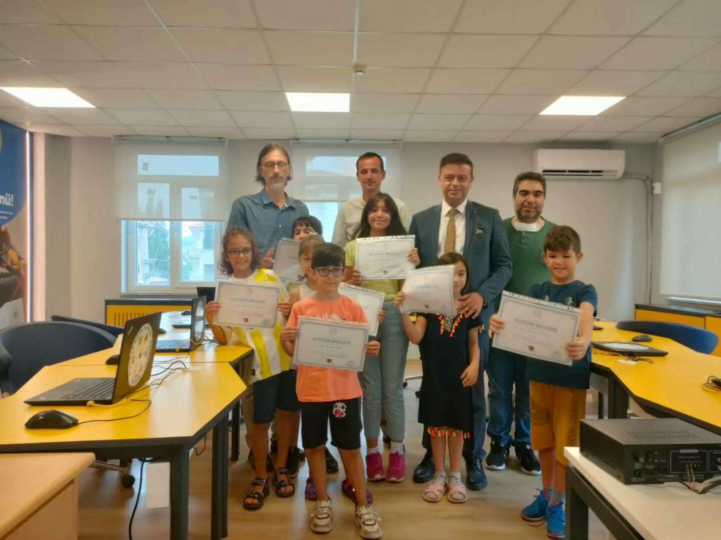 Atatürk Bilim ve Sanat Merkezi’nde açılan yaz okulunu ziyaret eden Yalova Milli Eğitim Müdürü Halil İbrahim Akmeşe öğrencilere katılım belgelerini verdi.