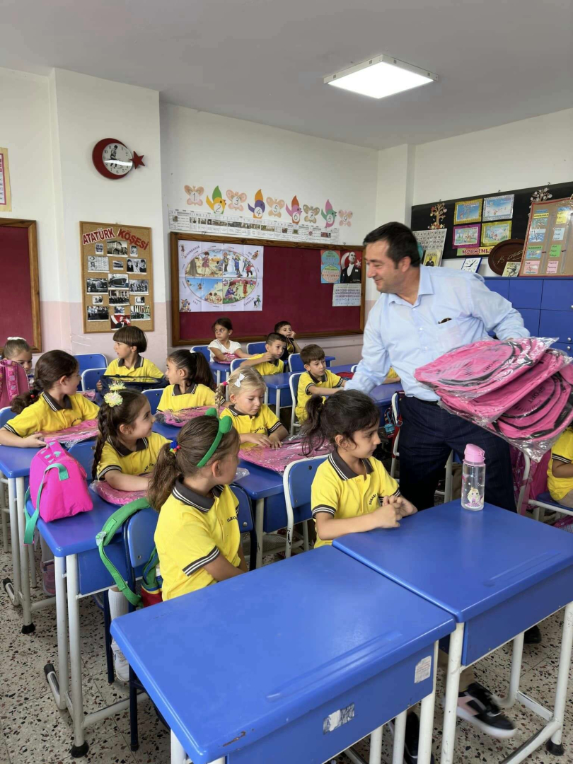 Yalova Subaşı Belediye Başkanı Turan Canbay okula yeni başlayan öğrencileri ziyaret etti