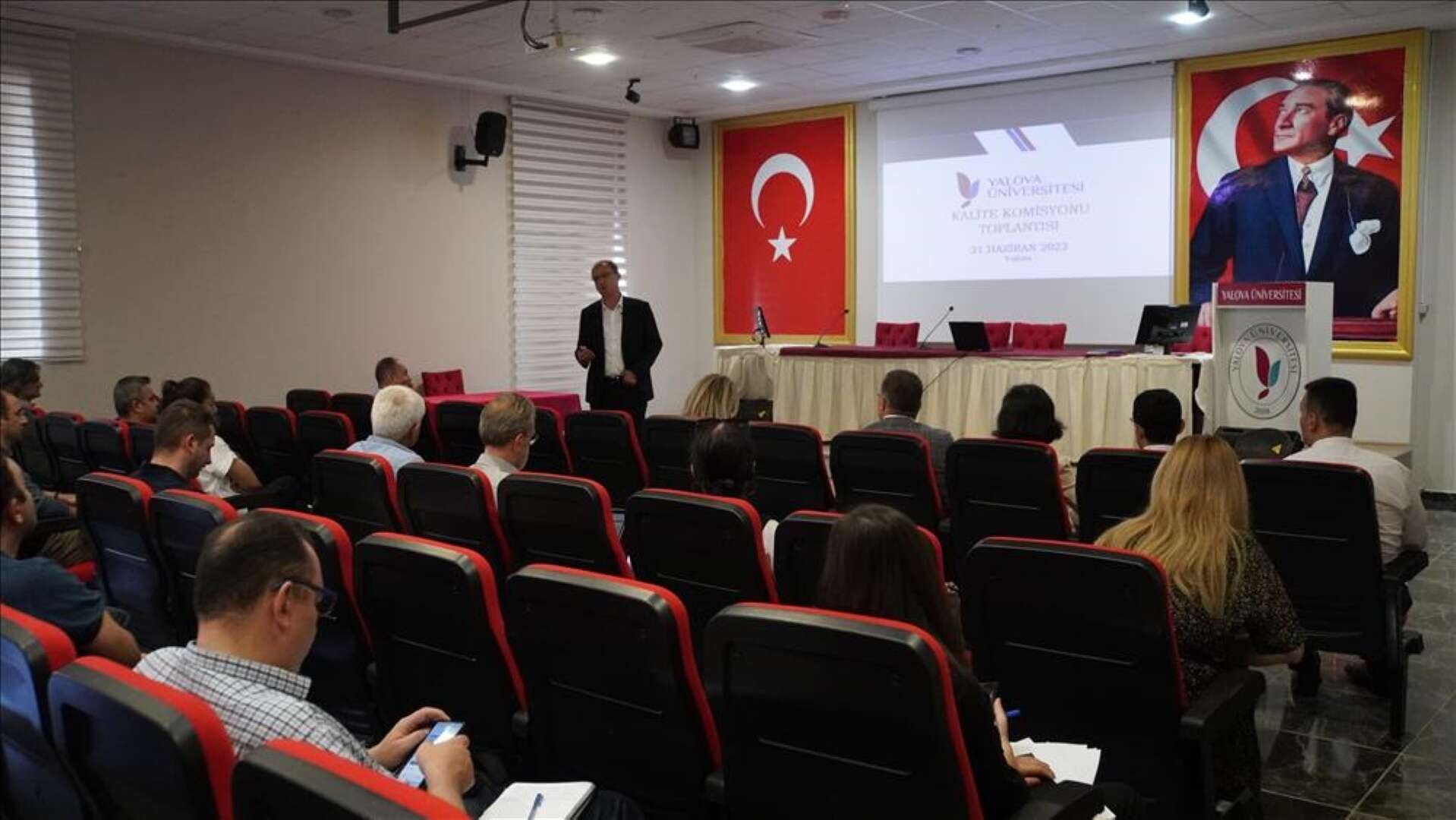 Yalova Üniversitesi’nde 2023 yılının 2. Kalite Komisyonu Toplantısı, Rektör Prof. Dr. Mehmet Bahçekapılı başkanlığında gerçekleştirildi. 21.06.2023 tarihinde Rektörlük toplantı salonunda saat 10:00'da gerçekleştirilen toplantıya, Kalite Komisyonu üyeleri olan Rektör Prof. Dr. Mehmet Bahçekapılı, Rektör Yardımcısı Prof. Dr. Senay Yürür Karslıoğlu, Kalite Koordinatörü Prof. Dr. Murat Azaltun, dekanlar, meslek yüksekokulu ve araştırma merkez müdürleri, idari birim yöneticileri ve dış paydaşlar katıldı.