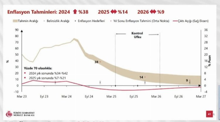 Enflasyon tahmin aralığı 2024 yılı sonu için yüzde 30 ile 41, 2025 yılı için de yüzde 7 ile 21 arasında tahmin edilmekteydi.