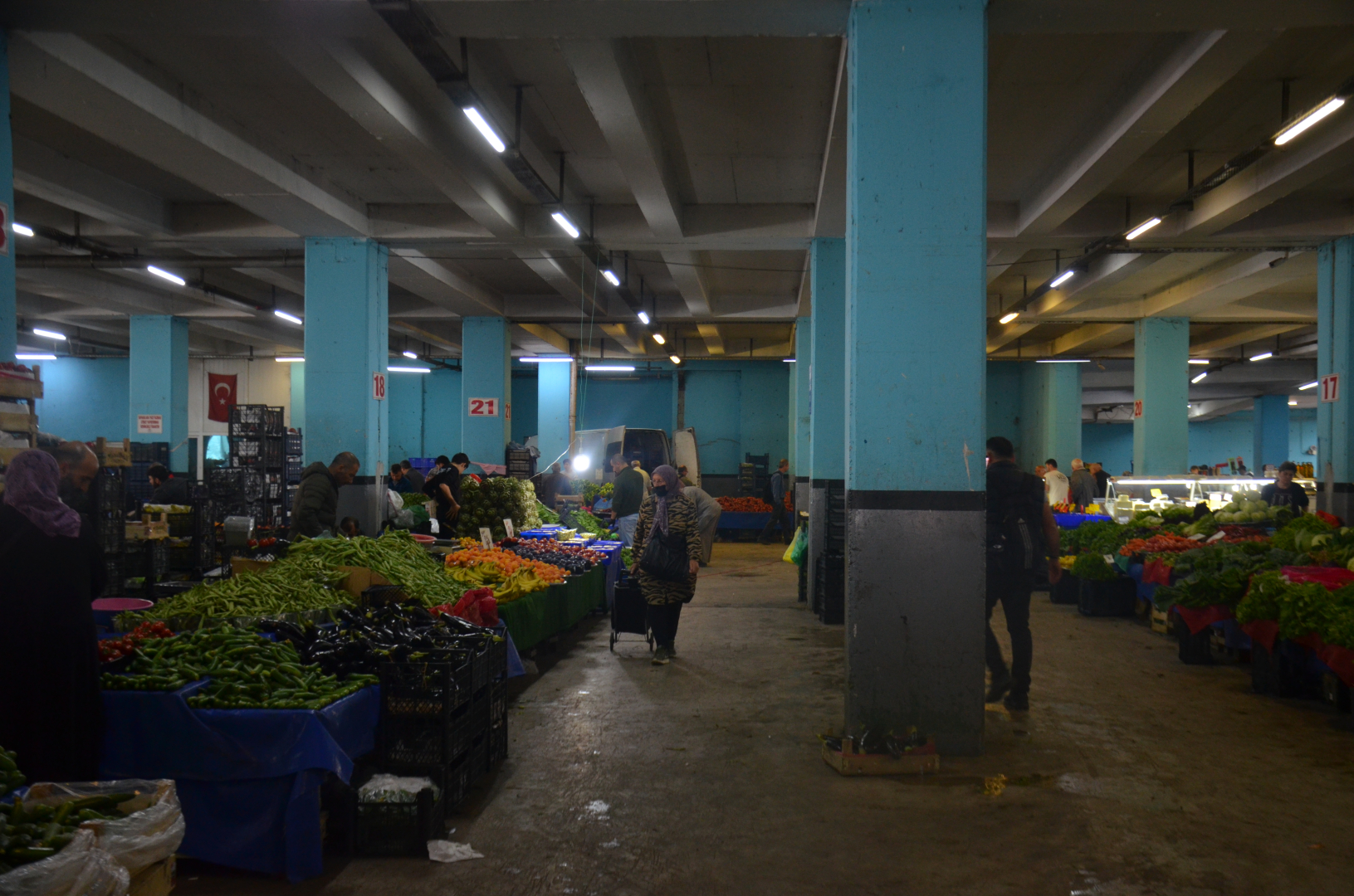 Yalova Kapalı Pazaryeri’nde her pazartesi günü meyve ve sebze pazarı kuruluyor. 5 Haziran Pazartesi günü öğlen saatlerinde pazaryerinde sessizlik hakimdi. Sıradan bir pazartesi gününde beklenen yoğunluk ve hareketlilik yerine, az sayıda insanın dolaştığı gözlemlendi.