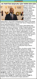 AK PARTİ’DE BAŞVURU İÇİN YARIN SON GÜN