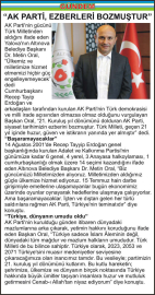 14 Ağustos 2001’de Recep Tayyip Erdoğan genel başkanlığında kurulan Adalet ve Kalkınma Partisi’nin günümüze kadar 6 genel, 4 yerel, 3 Anayasa halkoylaması, 1 cumhurbaşkanlığı olmak üzere 14 seçimi kazandığını ifade eden Altınova Belediye Başkanı Dr. Metin Oral, “Biz güncümüzü Milletimizden alıyoruz. Milletimizden aldığımız güçle ülkemize hizmet ediyoruz. 15 Temmuz hain darbe girişimiyle emellerine ulaşamayanlar bugün ekonomimiz üzerinde oyunlar oynayarak hedeflerine ulaşmaya çalışıyorlar. Ama başaramayacaklar. İçten ve dıştan gelen her türlü saldırılara rağmen AK Parti, Türkiye’nin teminatıdır” diye konuştu.