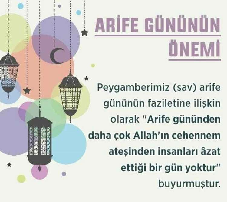 İslam alemi için büyük bir önemi olan arife günüyle ilgili birçok hadis vardır. Arefe, Bayramın müjdecisidir. Peygamberimiz, " En hayırlı, kabulü şayan olan dua, Arefe günü yapılan duadır." (Tirmizî, Dua, 8; Malik, Dua, 500) buyurmuşlardır.