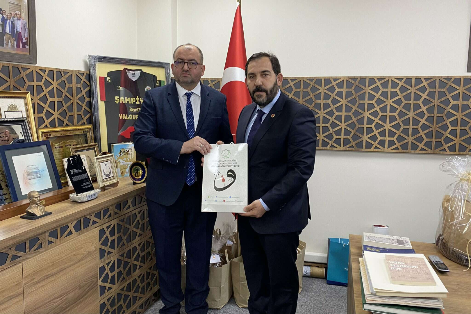 Bulgaristan’ın Filibe ve Kırcaali bölgelerinden gelen heyet, Yalova İl Genel Meclisi Başkanı Hasan Soygüzel’i makamında ziyaret etti. Heyette Filibe Bölge Müftüsü Taner Veli, Kırcaali Bölge Müftüsü Basri Eminefendi ve Yeşilay Bulgaristan Başkanı Ahmed Pehlivan yer aldı.