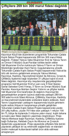 Vali Muammer Erol’un katılımıyla Yalova İl Tarım ve Orman Müdürlüğü tarafından Kent Tarımı Uygulamalarına yönelik Tohumdan Çatala Kışlık Sebze Projesi kapsamında Yalova'da örtü altı tarımını geliştirmek amacıyla Yalova Merkez, Kazımiye, Kadıköy, Hacımehmet köyleri ile Altınova, Çınarcık, Çiftlikköy ilçelerine bağlı köylerden 31 çiftçiye kışlık kıvırcık fidesi dağıtıldı. Kazımiye köy meydanında gerçekleştirilen programa Vali Muammer Erol’un yanı sıra İl Özel İdaresi Genel Sekreteri Ümit Yılmaz, İl Tarım ve Orman Müdürü Suat Parıldar, Kazımiye Muhtarı Seçkin Yıldırım ve çiftçiler katıldı. Vali Muammer Erol tarafından ilk dağıtımı Kazımiye’de gerçekleştirilen projenin üçüncü etabında yaklaşık 269 bin 300 adet kıvırcık fidesi Altınova, Çiftlikköy, Kazımiye, Kadıköy ve Hacımehmet köylerindeki üreticilere teslim edilecek. Kent Tarımı Uygulamaları yaklaşımı kapsamında büyük şehirlerin kışlık sebze ihtiyacını karşılamaya yönelik geliştirilen Tohumdan Çatala Kışlık Sebze Projesi kapsamında yüzde 25'i çiftçi katkısı, yüzde 75'i hibe olan yaklaşık 1 milyon 100 bin TL bütçe ile toplamda 2 milyona yakın marul, kışlık lahana ve kışlık pazı fidesi dağıtımı yapılması öngörülüyor. Proje Yalova Merkeze bağlı Kazimiye, Kadıköy, Çiftlikköy ilçesine bağlı Sultaniye, Kelebek Çayırı ile Altınova ve Çınarcık ilçelerinde uygulanacak. Proje sayesinde çiftçilere fide temini yapılarak yaklaşık bir ay erkencilik sağlanması ve standart üretim materyali kullanılarak kaliteli ürün elde edilmesi amaçlanıyor.