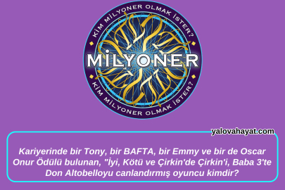 Kariyerinde bir Tony, bir BAFTA, bir Emmy ve bir de Oscar Onur Ödülü bulunan, "İyi, Kötü ve Çirkin'de Çirkin'i, Baba 3'te Don Altobelloyu canlandırmış oyuncu kimdir? Kim Milyoner Olmak İster