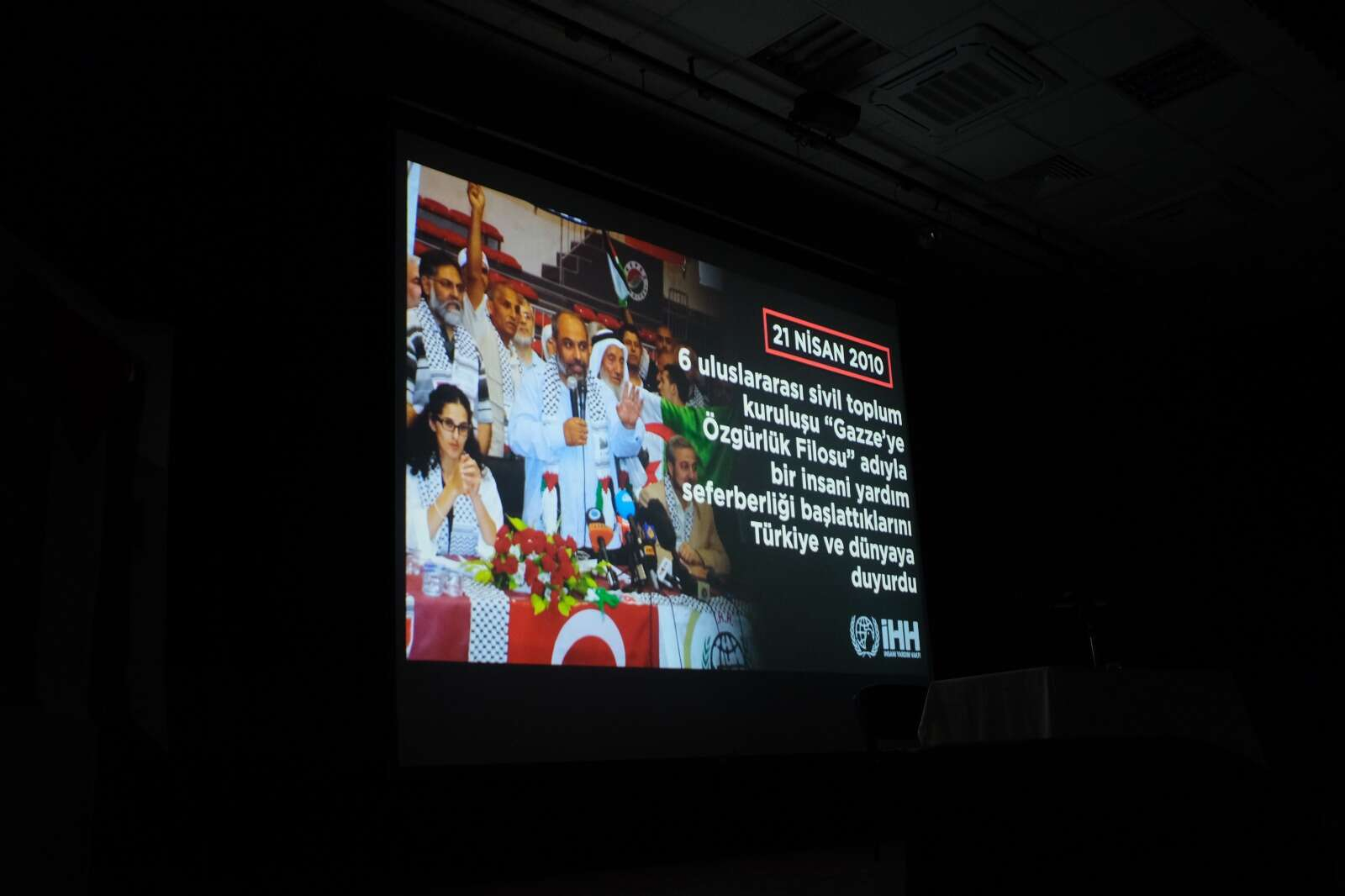 Programın devamında Mavi Marmara gemisinin yolcularından Mukadder Tanok ve Medet Kan, yaşadıkları olayları sinevizyon gösterimi eşliğinde anlattılar. Tanok ve Kan, gemide dünyanın farklı ülkelerinden sivil toplum kuruluşlarından insanların olduğunu, Gazze halkına insani yardım götürmek için yola çıktıklarını ancak İsrail askerlerinin silahlı saldırısına uğradıklarını ve kendilerini savunmaya çalıştıklarını anlattılar. Tanok ve Kan, şehit olan arkadaşlarını da rahmetle andıklarını söylediler.