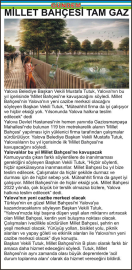 Yalova Belediye Başkan Vekili Mustafa Tutuk, Yalova’nın bu yıl içerisinde ‘Millet Bahçesi’ne kavuşacağını söyledi. Millet Bahçesi’nin Yalova’nın yeni cazibe merkezi olacağını söyleyen Başkan Vekili Tutuk, “Müteahhit firma da iyi çalışıyor ve hiçbir eksiği yok. Yılsonunda Yalova halkına teslim edilecek” dedi