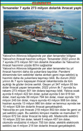 Yalova’nın Altınova bölgesinde yer alan tersaneler bölgesi Yalova’nın ihracat hacmini sırtlıyor. Tersaneler 2022 yılının ilk 7 ayında 273 milyon 501 bin dolarlık ihracatları ile Yalova’nın ihracat hacminin yüzde 80’ini sağladılar