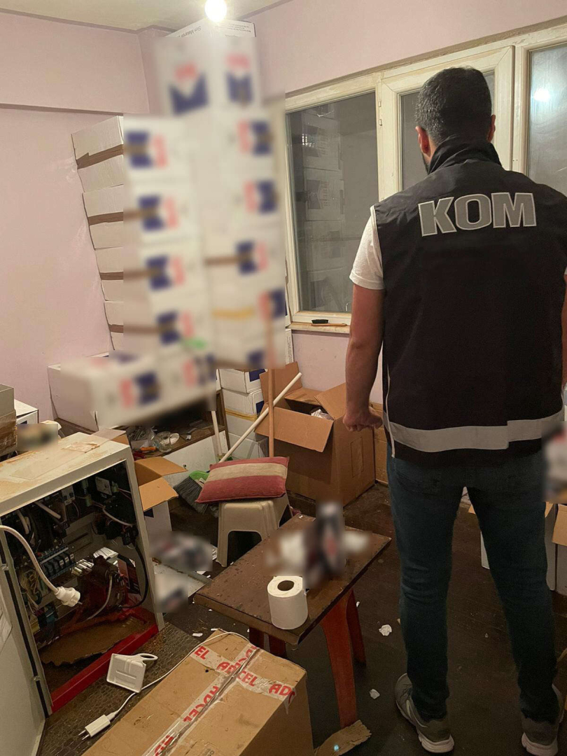 Kaçakçılık Şube Müdürlüğünün yürüttüğü çalışmaların devamında saat 05.00 sıralarında 6 ay süren fiziki ve teknik takibin ardından İstanbul merkezli Yalova, Van ve Kocaeli’ de belirlenen 18 farklı adres ile nakliyede kullanılan araçlara yönelik operasyon düzenledi. Adreslerde yapılan aramalarda, piyasa değerli yaklaşık 23 milyon lira olan 48 milyon 442 bin adet boş makaron, 10 milyon 92 bin 560 adet dolu makaron, 2 bin 634 adet kaçak sigara, 320 kilogram nargile tütünü, 345 adet puro, 19 adet elektronik nargile makinesi, 3 bin 986 kilogram kıyılmış tütün, 37 bin 180 adet sökülmüş bandrol, 63 bin adet boş sigara paketi, 102 bin adet yaprak sigara kağıdı, 50 bin adet sigara filtresi, 8 adet sigara dolum makinesi ve 8 adet kompresörü, 1 adet hava tankı, 1 adet kurutucu, 3 adet fan, 2 adet ısıtıcı, 2 adet makas ve 2 adet maket bıçağı ele geçirildi.