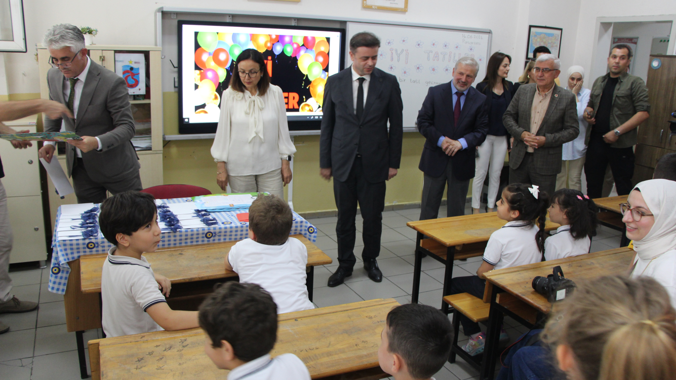 Yalova’da 2023/2024 eğitim ve öğretim yılı son ders zilinin çalması ile birlikte sona erdi. Atatürk İlkokulu’nda düzenlenen törende Yalova Valisi Dr. Hülya Kaya, Yalova Belediye Başkanı Mehmet Gürel ve Yalova Milli Eğitim Müdürü Halil İbrahim Akmeşe öğrencilere karnelerini dağıttılar