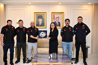 Yalova İHH Arama Kurtarma Ekip Lideri Mustafa Kaya, Osman Çalışkan ve arama kurtarma gönüllüleri Yalova Valisi Dr. Hülya Kaya’yı ziyaret etti.