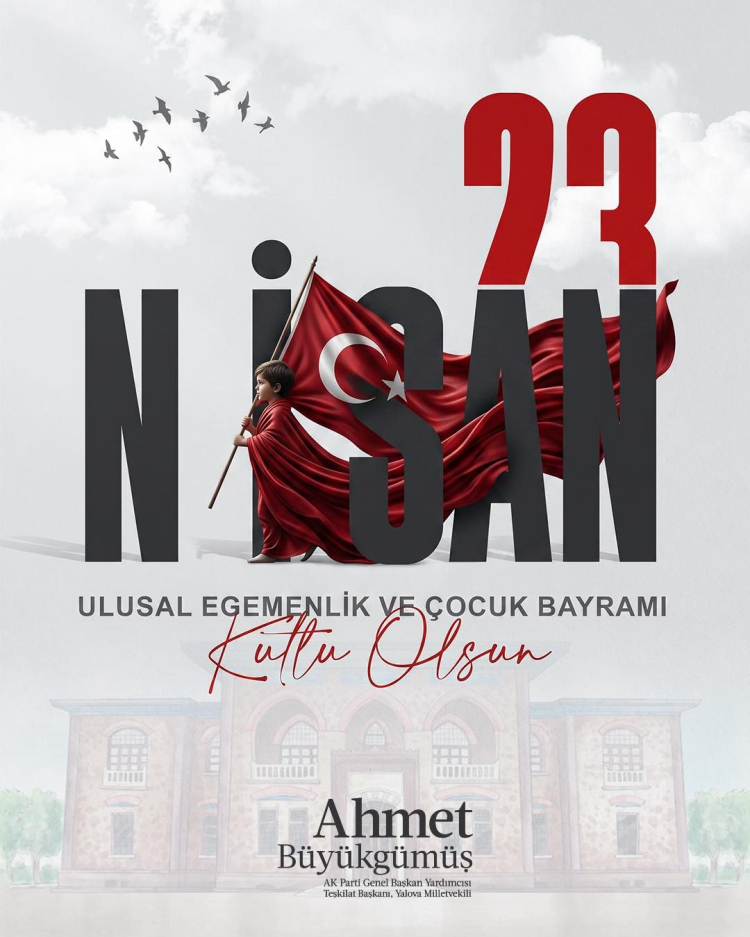 AK Parti Genel Başkan Yardımcısı ve Yalova Milletvekili Ahmet Büyükgümüş, 23 Nisan Ulusal Egemenlik ve Çocuk Bayramı vesilesiyle yayımladığı mesajında “Milli egemenliğimizin simgesi olan Türkiye Büyük Millet Meclisimizin kuruluşunun 106. yıl dönümünü ve 23 Nisan Ulusal Egemenlik ve Çocuk Bayramı’nı kutluyorum. Geleceğimizin teminatı olan çocuklarımızın, büyük ve güçlü Türkiye idealini daha ileriye taşıyacak inançla yetişmesini temenni ediyorum. Bu vesileyle Gazi Mustafa Kemal Atatürk başta olmak üzere, Milli Mücadelemizin tüm kahramanlarını saygı ve minnetle yâd ediyorum” ifadelerini kullandı.
