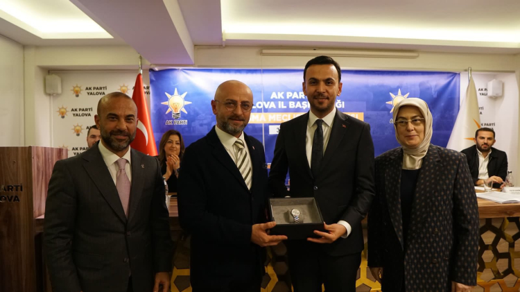 Toplantı kapsamında üye çalışmalarıyla hedefin üzerine çıkan Termal İlçe Başkanı Çağlar Erdinç’e teşekkür plaketi ve hediyeler takdim edildi.
