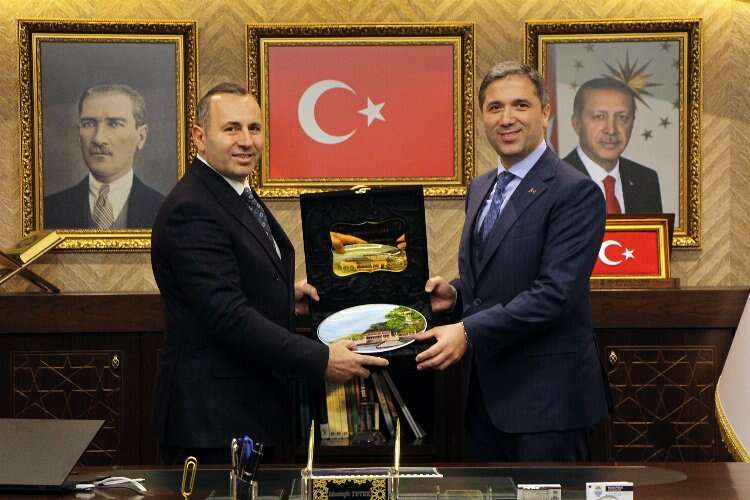 Yalova Belediye Başkanı Mustafa Tutuk,AK Parti Genel Başkan Yardımcısı Dış İlişkiler Başkanı Zafer Sırakaya'ya ziyareti anısına bir de hediye takdim etti. Sırakaya daha sonra Yalova ve Yalova Belediyesi hakkında Tutuk'tan bilgiler alarak istişarelerde bulundu.