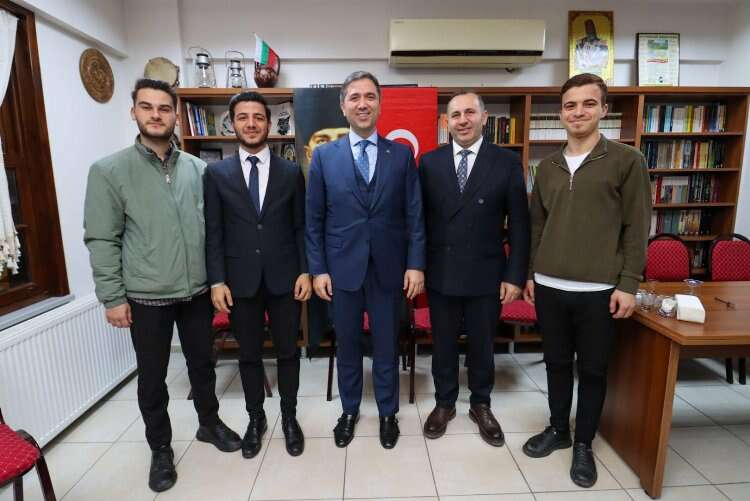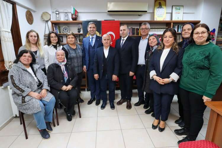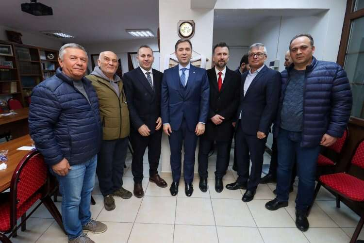 Göçmenleri Derneği'ne (BAL-GÖÇ)konuk oldu. Burada dernek başkanı Lütfi Özgür tarafından karşılanan Sarıkaya dernek çalışmaları hakkında istişarelerde bulundu.