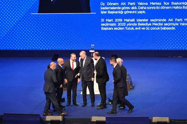 Aday tanıtım töreninden bir kaç gün önce Yalova Belediye Başkanı Mustafa Tutuk da bu törene davet edilmiş ve adaylığı kesinleşmişti. Adaylığın resmi olarak açıklanması ise düzenlenen törende yerine getirildi. Cumhurbaşkanı Recep Tayyip Erdoğan tarafından sahneye davet edilen Yalova Belediye Başkanı Mustafa Tutuk, Erdoğan tarafından eli havaya katılarak AK Parti'nin Yalova Belediye Başkan adayı olarak açıklandı. Cumhurbaşkanı Recep Tayyip Erdoğan Yalova Belediye Başkanı ve AK Parti Yalova Belediye Başkan Adayı Mustafa Tutuk'u Yalovalılara emanet etti. Sahneye Başkan Tutuk ile birlikte Yalova Milletvekilleri Ahmet Büyükgümüş ve Meliha Akyol, İl Başkanı Umut Güçlü, İl Kadın Kolları Başkanı Selihan Dicle Şimşek, İl Gençlik Kolları Başkanı Muaz Ceylan ile Merkez İlçe Başkanı Aydın Kopuz da çıktı ve Cumhurbaşkanı Erdoğan ile birlikte el kaldırdı.