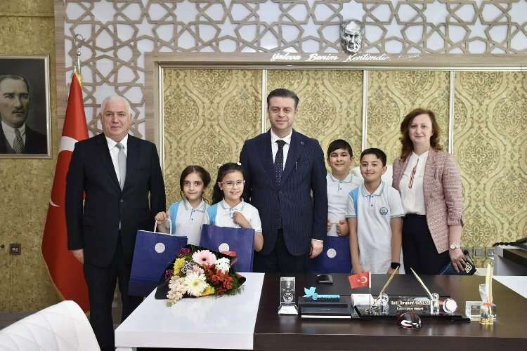Yalova İl Milli Eğitim Müdürü Halil İbrahim Akmeşe, 23 Nisan Ulusal Egemenlik ve Çocuk Bayramı kapsamında, Yalova İlkokulu öğrencilerini makamında konuk etti. Gerçekleştirilen ziyarette minik öğrenciler; Hifa Oruç, Liya Kumsal Maviş, Çınar Gürbüz ve Alper Kaan Dinler, okul müdürleri ve öğretmenleriyle birlikte İl Milli Eğitim Müdürlüğü’nde Akmeşe tarafından karşılandı.