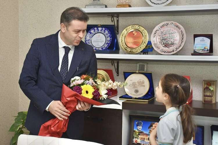 Yalova İl Milli Eğitim Müdürü Halil İbrahim Akmeşe, 23 Nisan Ulusal Egemenlik ve Çocuk Bayramı nedeniyle kendisini ziyaret eden minik öğrencilerini ağırladı.