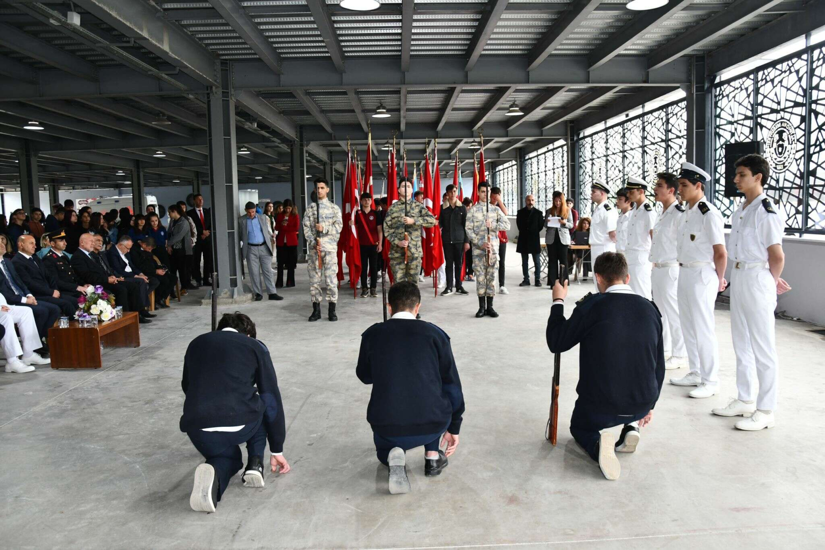 Hava muhalefeti nedeniyle Altınova Belediyesi Kapalı Pazar Yerinde düzenlenen törenler, saygı duruşu ve İstiklal Marşı’nın okunmasıyla başladı.