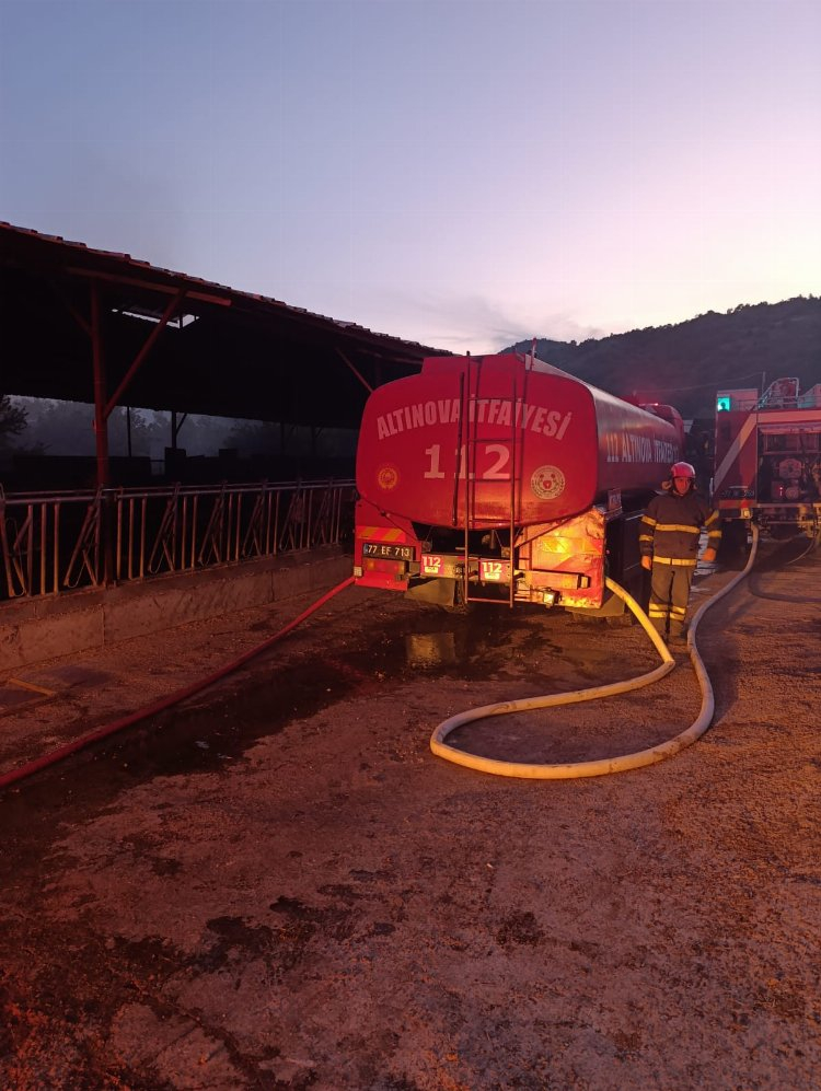 Altınova’da saman dolu hangar yandı