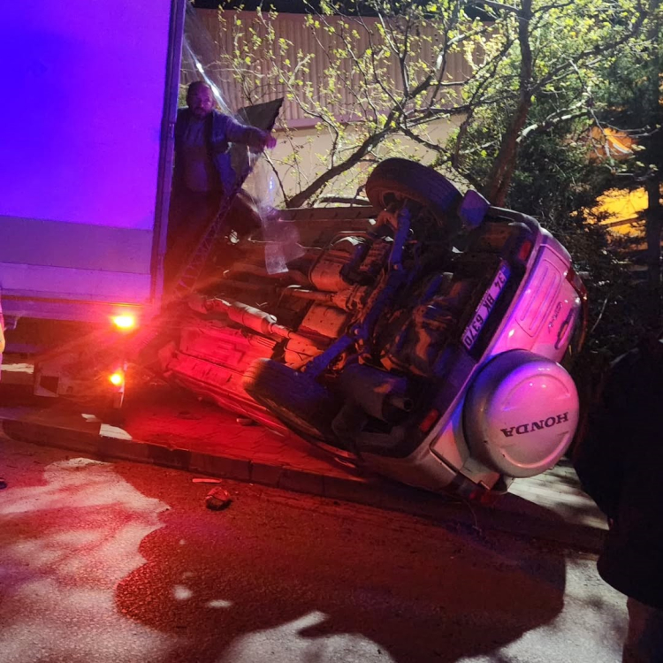 Kontrolden çıkan kamyon, o esnada İhlas istikametinden Armutlu istikametine gitmekte olan 34 BK *** plakalı Hyundai marka otomobile çarparak durabildi. Çarpışmanın şiddetiyle yan yatan araçtaki sürücü ve eşi hafif yaralandı.