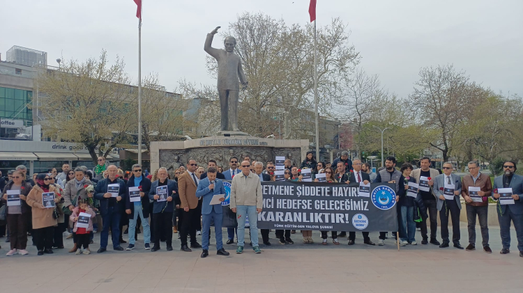 Açıklamasına “Buradan açık bir çağrıda bulunuyorum; okullarımızda yaşanan şiddet hadiseler sadece öğretmenlerin, sadece öğrencilerin meselesi değildir. Bu mesele toplumun tamamını ilgilendirmektedir. Ailelerimize, velilerimize ve toplumun tüm kesimlerine sesleniyorum: Gelin, bu tür olaylara hep birlikte sahip çıkalım. Okulumuza öğretmenimize, öğrencimize birlikte sahip çıkalım. Bu mesele hepimizin meselesidir” diye devam eden Serdar Uğur, “Şehit öğretmenimizi şükranla ve dualarla anıyorum. Kendisi öğrencilerini korumak için siper olmuştur. Bu büyük fedakârlığın karşılığı elbette yücedir. İnanıyorum ki Allah katında şehittir. Bu vesileyle başta Milli Eğitim Bakanlığı olmak üzere tüm ilgili kurumlara çağrıda bulunuyorum öğretmenimizin şehit statüsünde değerlendirilmesi gerekmektedir" ifadelerini kullandı. Basın açıklamasının ardından Türk Eğitim-Sen Yalova Şubesi Başkanı Mustafa Deviren, Türk Eğitim Sen Yalova Şubesi Başkan Yardımcısı Serdar Uğur ve öğretmenler Atatürk Anıtı’na karanfil bıraktı.