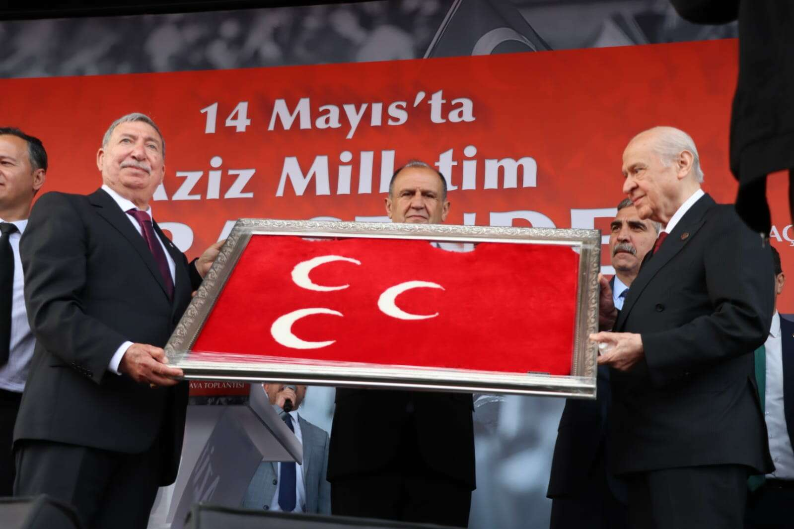 Konuşmasının ardından MHP Genel Başkanı Devlet Bahçeli’ye MHP Yalova İl Başkanı İhsan Güldoğan tarafından üzerinde 3 hilal işli bir tablo hediye edildi. Bahçeli ise kendisini coşkuyla karşılayan Yalovalılara çiçekler atarak teşekkür etti.