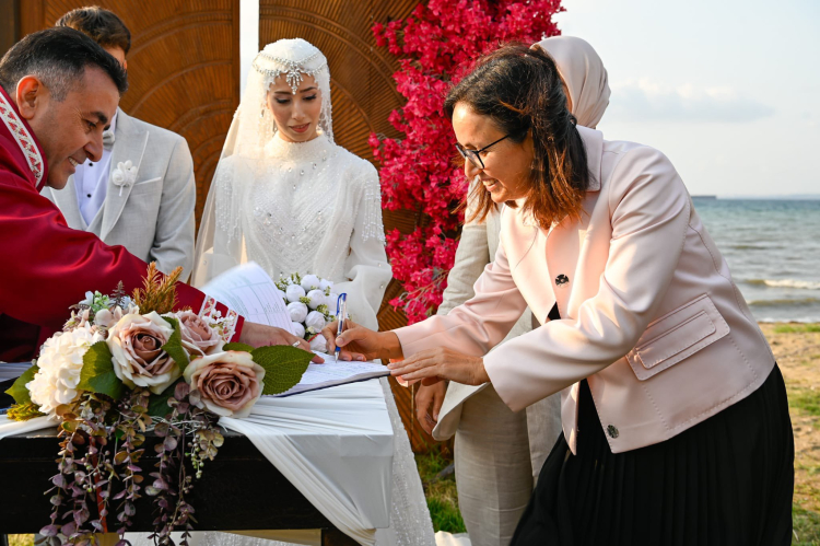 Çiftlikköy ilçesindeki bir restoranda gerçekleşen nikahı Tavşanlı Belediye Başkanı Mücahit Kaçar kıydı. Nikah törenine Vali Hülya Kaya, AK Parti Milletvekili Meliha Akyol ve İl Başkanı Umut Güçlü de katıldı.