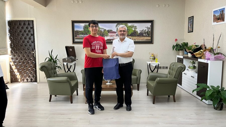 Yalova İl Milli Eğitim Müdürü Aytekin Yılmaz LGS‘de 500 tam yapan Uzmanlar Koleji öğrencisi Ali Hocazade‘yi makamında kabul etti.