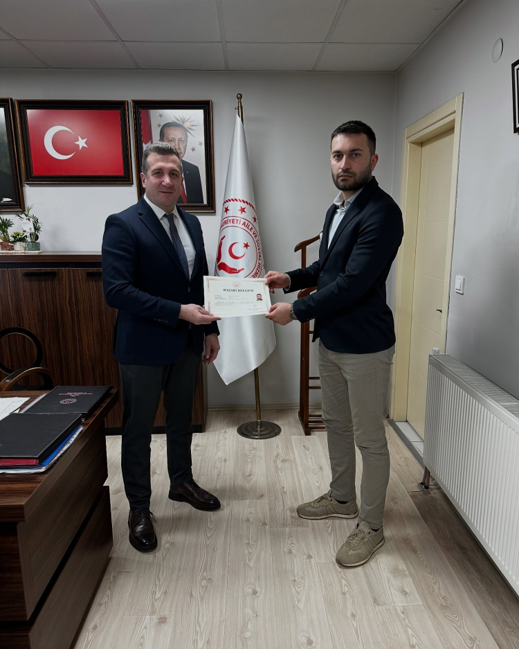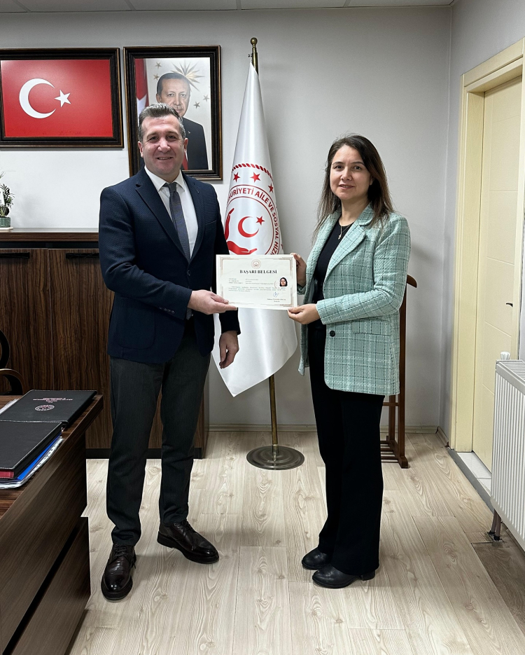İl Müdür Yardımcısı Sümeyye Yanık Doğan, Sosyal Hizmet Merkezi Müdürü Sevcan Ayan Kocabaş ve kurum personellerinin başarı belgesini Arif Laçin takdim etti.