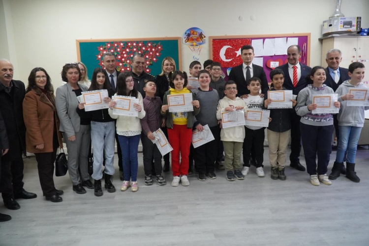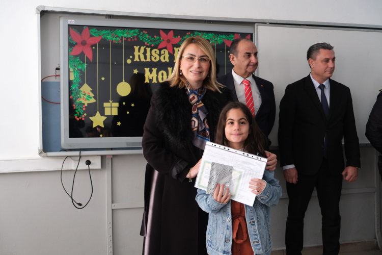 Öğrencilerle tek tek sohbet ederek karnelerini veren Başkan Fazlaca, öğretmen ve öğrencilere iyi tatiller diledi.