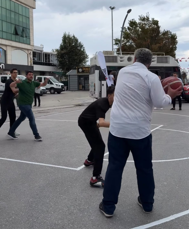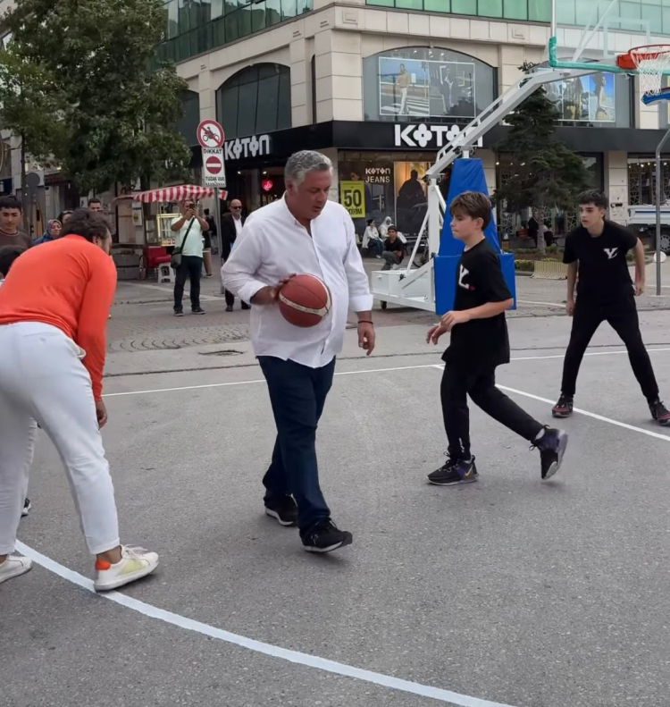 Yalova Belediye Başkanı Mehmet Gürel, Avrupa Hareketlilik Haftası kapsamında, 15 Temmuz Demokrasi ve Cumhuriyet Meydanı’na yerleştirilen potada, gençlerle basketbol oynadı. O anlar renkli görüntülere sahne olurken, Başkan Gürel’in bu hareketi alkış topladı.