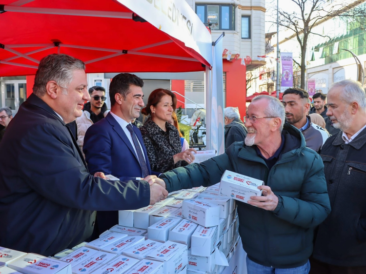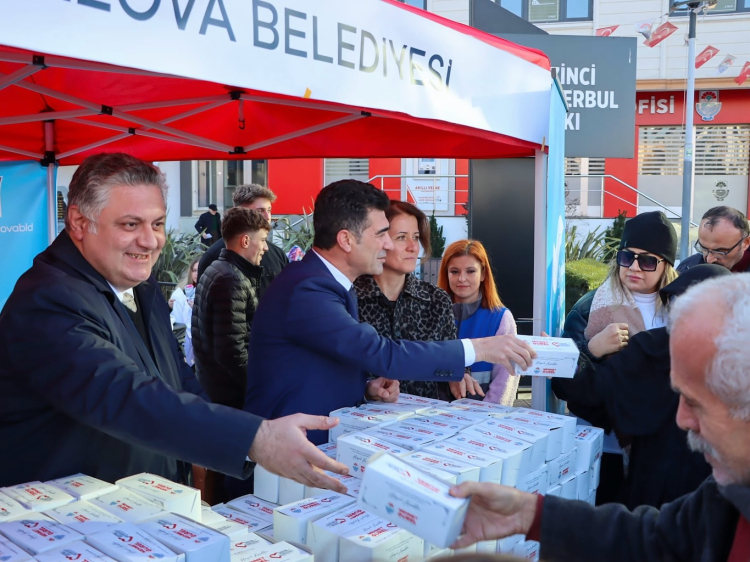 Yalova Belediye Başkanı Mehmet Gürel, Regaip Kandili dolayısıyla Uğur Mumcu Kültür Merkezi önünde kandil simidi dağıtımı gerçekleştirdi.