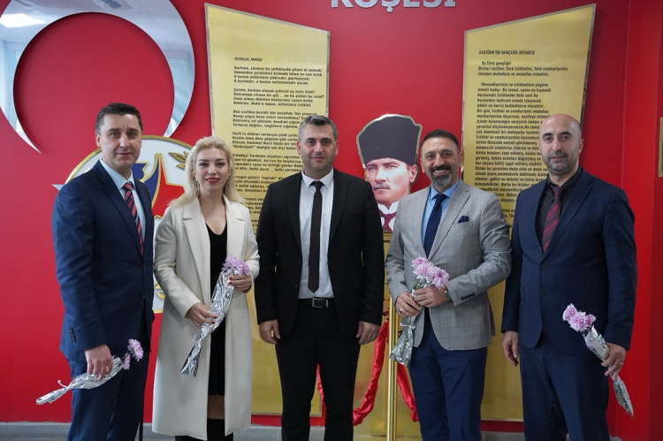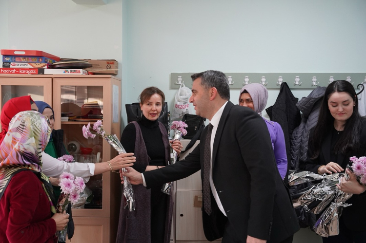 ziyaret etti ve görevi başındaki öğretmenlere çiçek takdim ederek öğretmenler gününü kutladı.