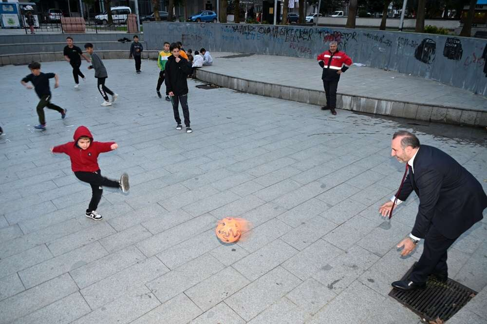 Ayrıca mahallenin çocuklarıyla bir araya da gelen Başkan Tutuk, mahallenin gençlerinden gelen istekleri de dinleyerek kısa süreliğine onlarla futbol maçı yaptı.