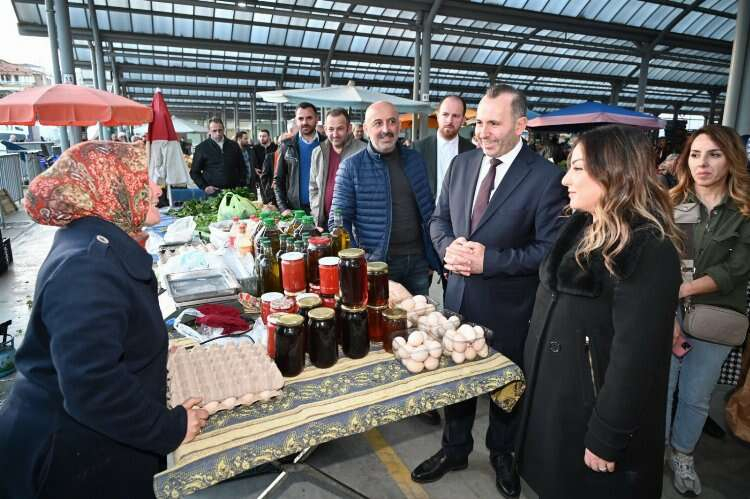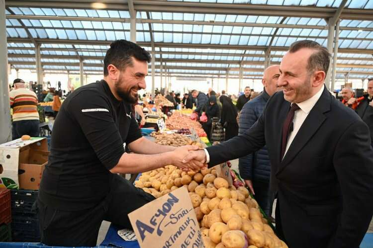 Pazarcı esnafı ve vatandaşlar, Yalova’ya hizmetlerinden dolayı Başkan Tutuk’a teşekkür edip, “Gönlümüz ve dualarımız sizinle. Allah’ın izniyle yanınızdayız”, “Şehrimizde yapılamayanları yaptınız. Mahallemizdeki sorunları çözdünüz. Sizinleyiz, başkanım” şeklinde slogan attı.