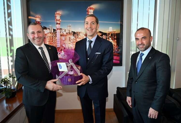 Görüşme sonrasında Başkan Tutuk, Yönetim Kurulu Başkanı Dinçkök’e, Yalova Aronyası ve özel olarak üretilen Yalova Kağıdı’na isminin hat sanatı ile yazdığı tabloyu hediye etti.