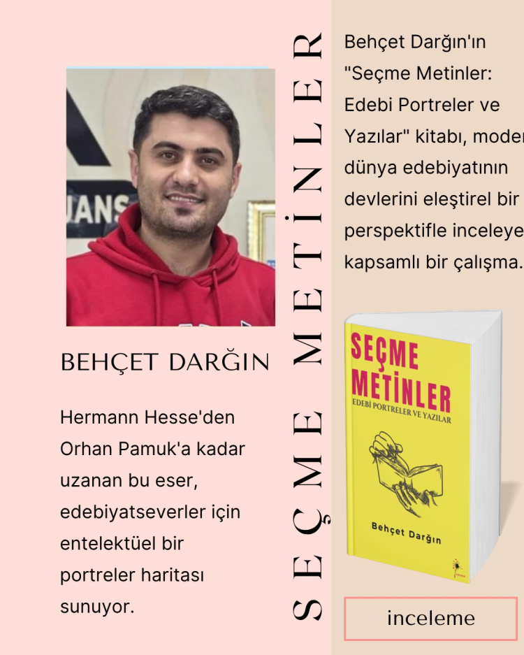 Edebiyat eleştirmeni Behçet Darğın, uzun yıllara yayılan birikimini “Seçme Metinler: Edebi Portreler ve Yazılar” adlı eserinde bir araya getirdi. Modern dünya edebiyatının önde gelen isimlerini ele alan kitap, edebiyatseverlere farklı bakış açısıyla keyifli bir okuma deneyimi sunuyor.