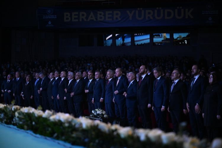 Törende hitap eden Cumhurbaşkanı Recep Tayyip Erdoğan, ulaştırma yatırımlarının Türkiye’ye çağ atlattığını vurgulayarak, "Bugün yatırımlarımızla Türkiye'yi güçlendirmenin 86 milyonun tamamına aşkla hizmet etmenin bahtiyarlığını yaşıyoruz. Bugün bir yandan kalpleri birbirine sıkıca kenetlemenin, diğer yandan şehirlerimizi bölünmüş yollarla birbirine bağlamanın sevincini yaşıyoruz. Eski Türkiye'yi bilen herkes bugün şu gerçeği kabul ediyor: İktidarlarımızın başarı hikâyesi yazdığı, Türkiye'ye çağ atlattığı, Türkiye'nin makûs talihini değiştirdiği alanların en başında ulaştırma vardır." ifadelerini kullandı.