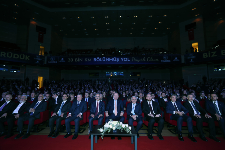 Erdoğan konuşmasının devamında yol güvenliği ve insan hayatının önemine dikkat çekerek, "Yol kusurundan kaynaklanan kaza oranını neredeyse sıfıra indirdik. İşte bunun değeri, maliyeti, kazancı parayla ölçülemez. Önüne geçilen her kaza, kurtarılan her hayat bizim için dünyalara bedeldir. Milletimizin şöyle yüreğinden koparak ettiği 'Allah razı olsun' duası her türlü makamın, rütbenin katbekat üstündedir." şeklinde konuştu. Konuşmaların ardından 30 bininci kilometreyi simgeleyen kurdele kesimi gerçekleştirildi. Törenin bu bölümünde de sahnede yer alan Büyükgümüş ve Akyol, ulaşım hamlesinin gururunu protokol üyeleriyle birlikte paylaştı.