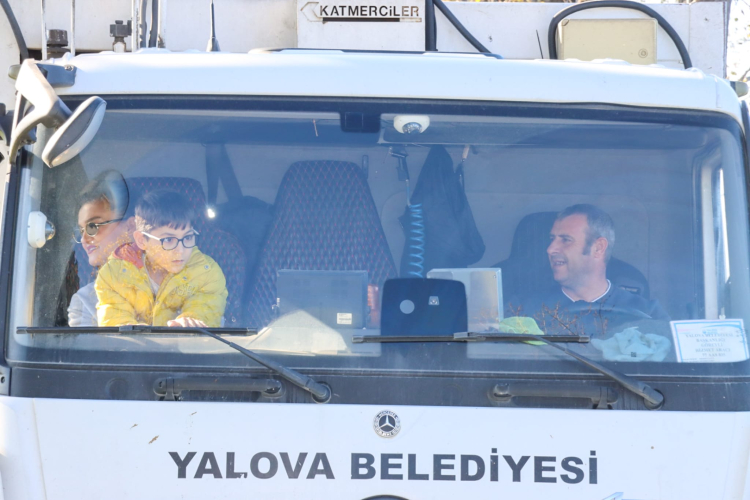 Çöp kamyonunun direksiyonuna oturan, ekiplerin çalışma sürecini yakından gözlemleyen Çağan’ın mutluluğu yüzüne yansırken, yaşadığı heyecan çevredeki vatandaşların da duygulu anlar yaşamasına neden oldu.