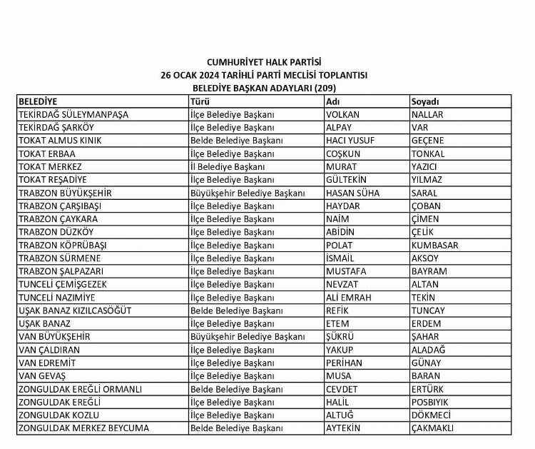 CHP Büyükşehir, il ve ilçe belediye başkan adayları şöyle: