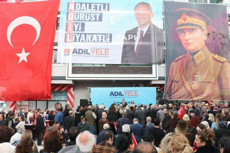 Çiftlikköy’ün, Çiftlik Mahallesinde yer alan CHP Çiftlikköy Belediye Başkan Adayı Adil Yele’nin Seçim İletişim Merkezi açılışı adeta bir mitingi andıran görüntülere sahne oldu. Yoğun katılım sebebiyle bir miting havasında gerçekleşen açılışta seçim kampanyasının müzikleri de ilk defa dinletildi ve büyük bir coşku yaşandı. Törende konuşma gerçekleştiren CHP Çiftlikköy İlçe Başkanı Savaş Kaşıkçı, “Çiftlikköy Belediyesi’ni sosyal demokrat, adil belediyecilikle tanıştıracağız” dedi. İl Başkanı Erdem Doğancı ise 31 Mart akşamı belediyenin önünde seçim müzikleriyle kutlama yapacaklarını söyledi.