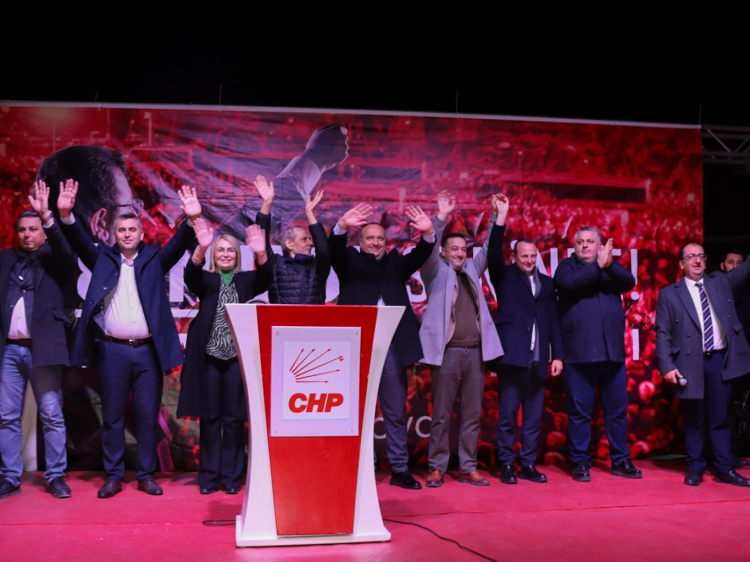 Mitinge katılan CHP’li belediye başkanları kürsüye kalabalığı selamladı.